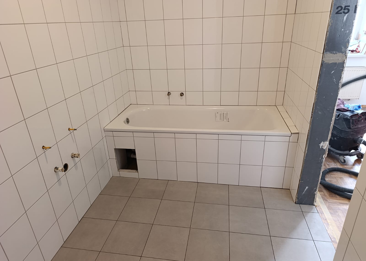 Bei diesem Projekt lag ein über Jahre unbemerkter Wasserschaden in einem Badezimmer eines Mehrfamilienhauses vor. Durch eine gezielte Leckageortung konnte die Ursache eindeutig lokalisiert werden. Aufgrund der langen Schadensdauer waren umfangreiche Sanierungsmaßnahmen erforderlich, einschließlich des Austauschs von Teilen des Grundgebälks. Die Sanierung erfolgte koordiniert und mit klarer Abstimmung aller beteiligten Gewerke. Abschließend wurde das Badezimmer vollständig wiederhergestellt.