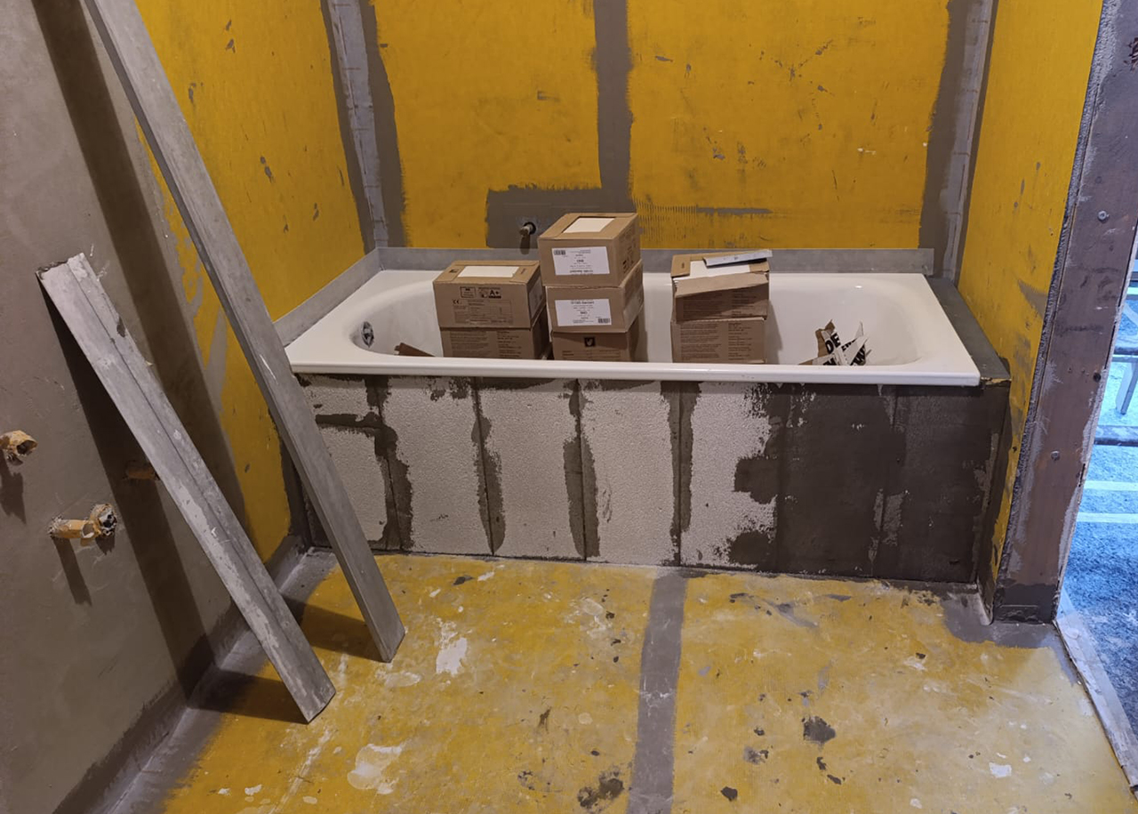 Wasserschadensanierung nach langjähriger Undichtigkeit im Bad eines Mehrfamilienhauses.