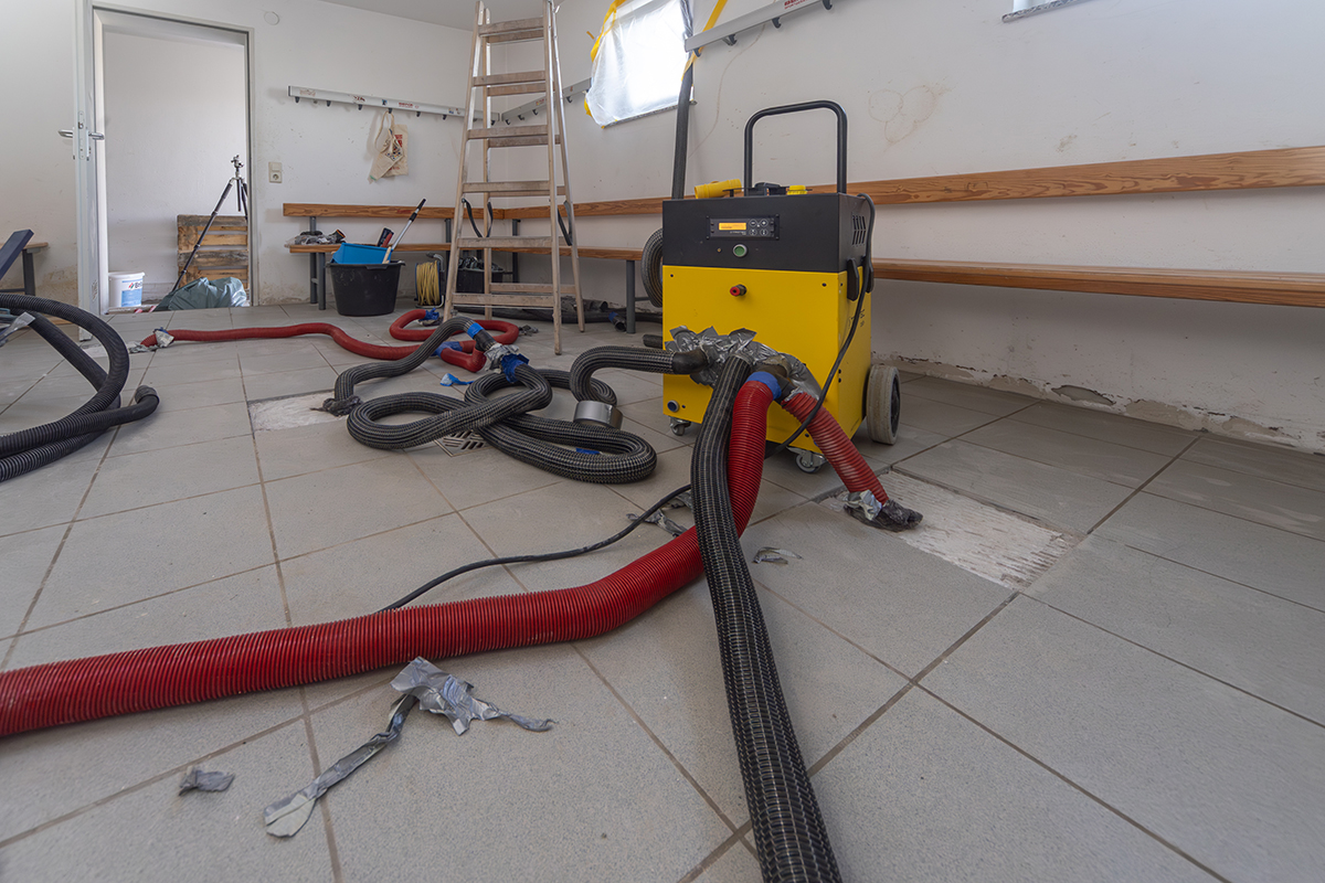- Technische Trocknung von Estrich und Dämmschicht durchgeführt